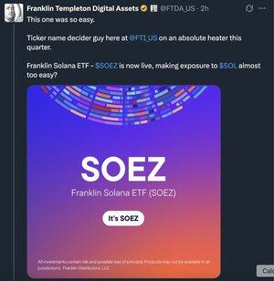 🚨Solana ETF $SOEZ 已正式在富蘭克林坦伯頓推出,並且現在可以進行交易。