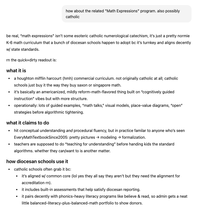 天主教學校的選擇似乎不太好,也不算糟。閱讀計劃是基於(類似)語音的,但數學計劃聽起來不幸的是相當普通。