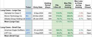 除了我的收益回顧外,我在這裡過去一年只發了五個新案例。 它們分別是 #1 Mag7 年初至今 $GOOG、#1 半導體 年初至今 $MU 和 #1 中國大型股 年初至今 $BABA。還有兩個 🚀 小型股,$AEO 和 $LYFT。 目前平均回報 +111%。 正如他們所說,少即是多。