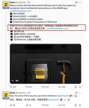 昨天開了一個 Zama 測試網進行壓力測試並通過 DEMO 應用發送保密交易