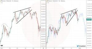 我越看每週的 #BTC 圖表,就越讓我想起 2021 年第一季到第二季的高點 這真的是一模一樣的頂部結構 👌