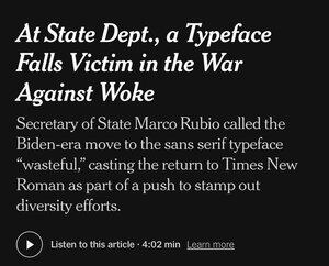 不是洋蔥新聞:魯比奧下令外交官停止使用 Calibri(我認為這是一種更優秀的字體),稱其為「浪費的多樣性舉措」