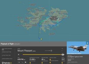 📍福克蘭群島(馬爾維納斯群島) 一對 @RoyalAirForce (🇬🇧) 的歐洲颱風戰鬥機昨天進行了短暫的飛行,對位於RAF Mount Pleasant的東島進行了一些巡邏。